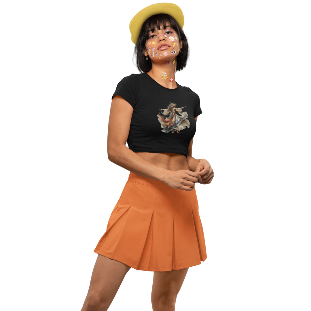 Deixe sua alma dançar ao ritmo da liberdade com o Cropped Feminino Quality – Alma Cigana! Inspirado no encanto e na intensidade da cultura cigana, essa peça traz a imagem de uma bela cigana em movimento, vestindo um traje vibrante e cheio de vida. A estampa captura a essência da dança, da música e da energia vibrante de quem vive sem amarras e segue o coração.