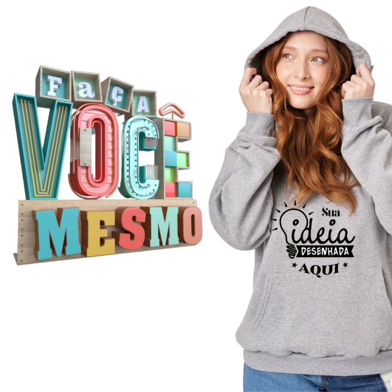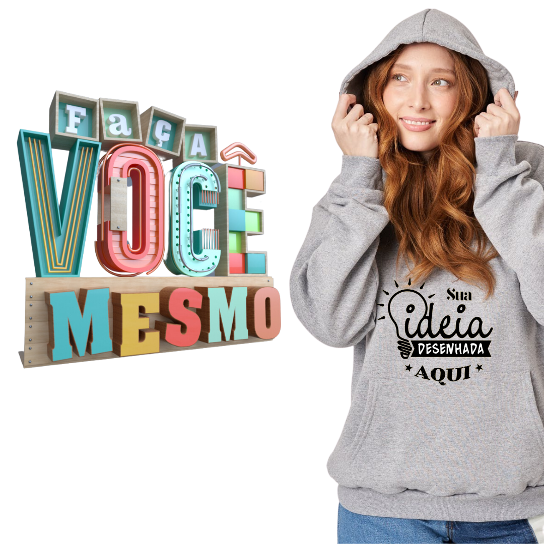 Eleve o nível do seu guarda-roupa, ou leve a sua marca para onde for, com o moletom canguru. Uma peça versátil que proporciona conforto inigualável e personalização exclusiva, para que você esteja sempre na moda, do seu jeito!